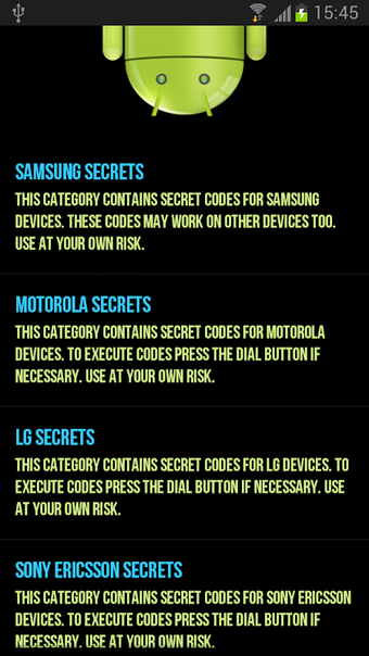 However, it's crucial to note that some manufacturers may restrict the use of these codes, which could prevent them from functioning properly on certain devices. Users should proceed with caution as altering device settings using these codes can lead to unintended consequences. Overall, Secret Codes for Android serves as a handy tool for those interested in delving deeper into their device's features.